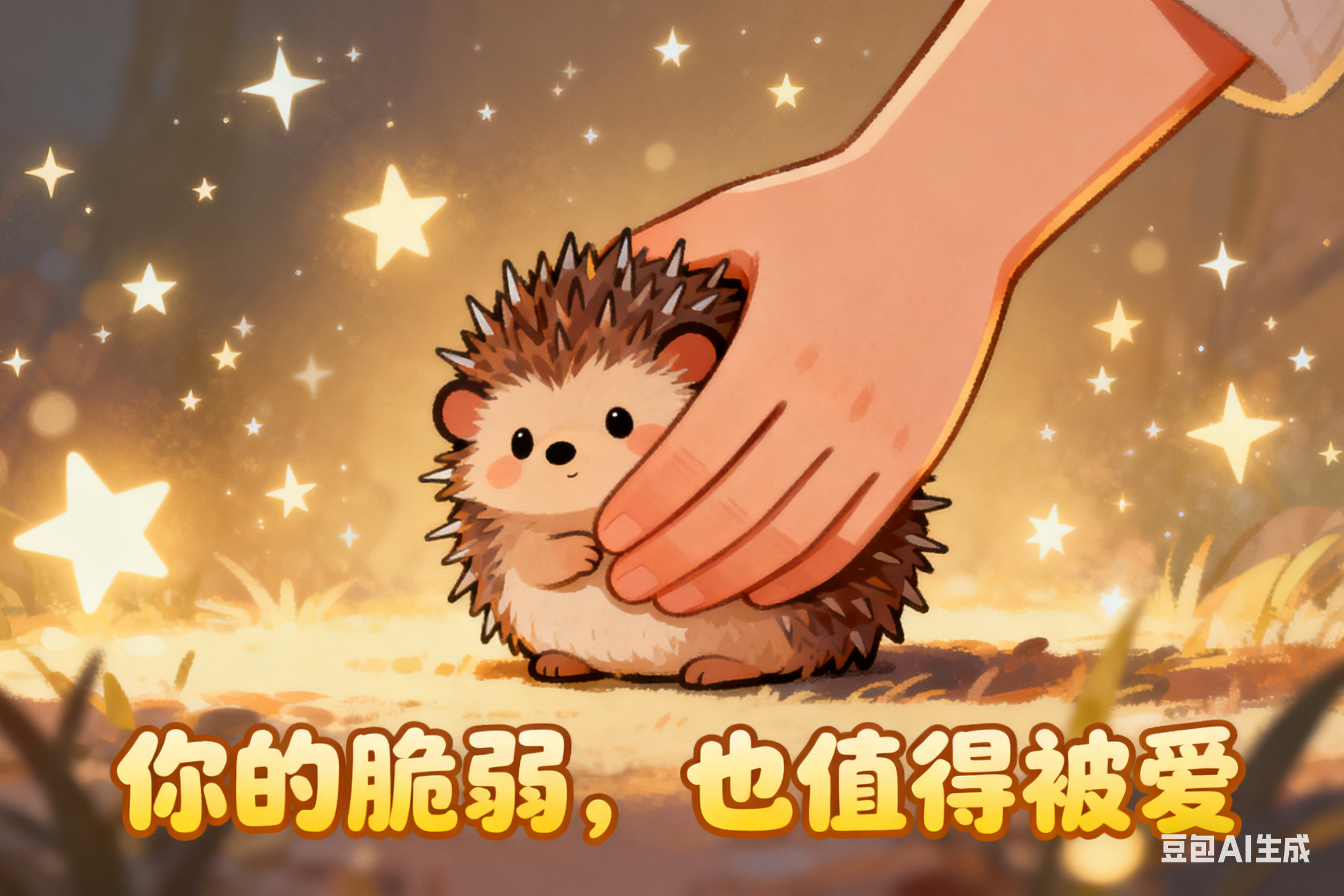 就像卡通里的小刺猬,不用一直豎著刺,偶爾把肚子露出來,也會(huì)有人輕輕抱住你。
